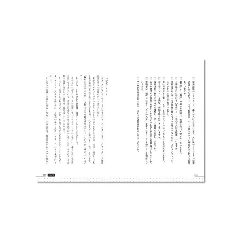 など、優秀な人材の確保に困っている大勢の採用担当者に向けて、どうしたら採用に強い組織をつくることができるか、採用で失敗しないためにはどうすればいいか、その解決策を「面談」という切り口で、具体的に提示。本書を読めば、採用の悩みはスッキリ解決します!